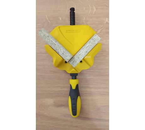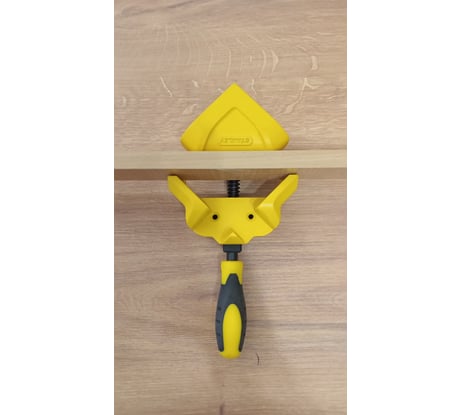 - Шарнирная конструкция позволяет фиксировать под прямым углом детали одинаковой или различной толщины;