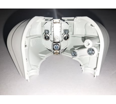 Хорошая вилка. Надёжный зажим провода за общую оболочку. Зажим фазы и рабочего нуля - винтами поперёк провода, провод вставляется по оси в отверстие штыря. Защитного нуля - прижимной пластиной, через винт. Обязательно надо использовать обжимные наконечники (я использовал НШВИ они подходят). без наконечников использовать не рекомендую. Особенность - центральная и боковые части неотъёмны, корпус раскрывается см. фото.