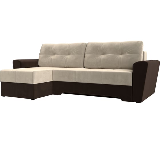Угловой диван Лига диванов Амстердам левый основа микровельвет бежевый, компаньон микровельвет коричневый 28223L