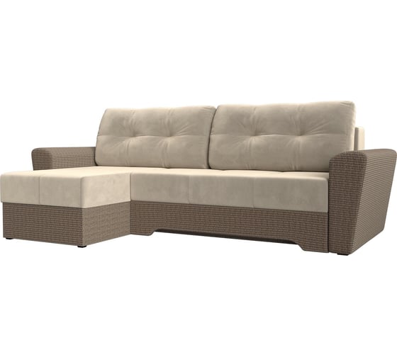 Угловой диван Лига диванов Амстердам левый основа микровельвет бежевый, компаньон рогожка корфу 03 117804L