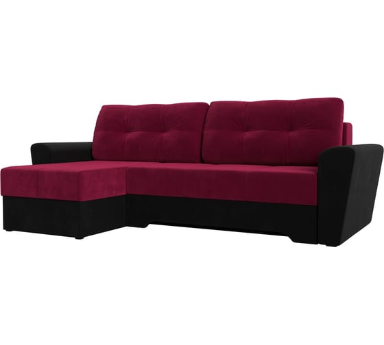 Угловой диван Лига диванов Амстердам левый основа микровельвет бордовый, компаньон микровельвет черный 117807L