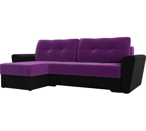 Угловой диван Лига диванов Амстердам левый основа микровельвет фиолетовый, компаньон микровельвет черный 28227L