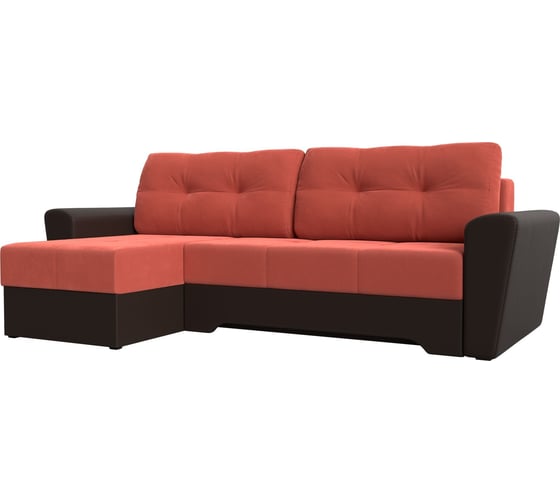 Угловой диван Лига диванов Амстердам левый основа микровельвет коралловый, компаньон экокожа коричневая 117813L