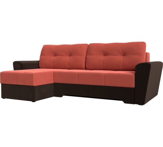Угловой диван Лига диванов Амстердам левый основа микровельвет коралловый, компаньон микровельвет коричневый 117814L