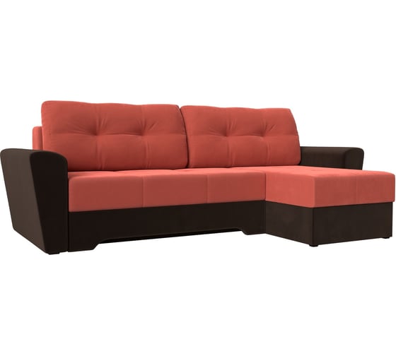 Угловой диван Лига диванов Амстердам правый основа микровельвет коралловый, компаньон микровельвет коричневый 117814