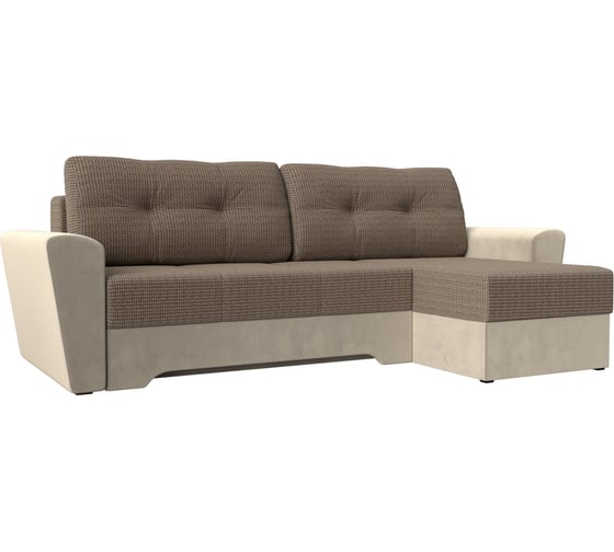Угловой диван Лига диванов Амстердам правый основа рогожка корфу 03, компаньон микровельвет бежевый 117828