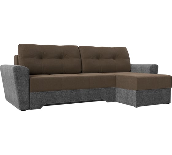 Угловой диван Лига диванов Амстердам правый основа рогожка коричневая, компаньон рогожка серая 35185