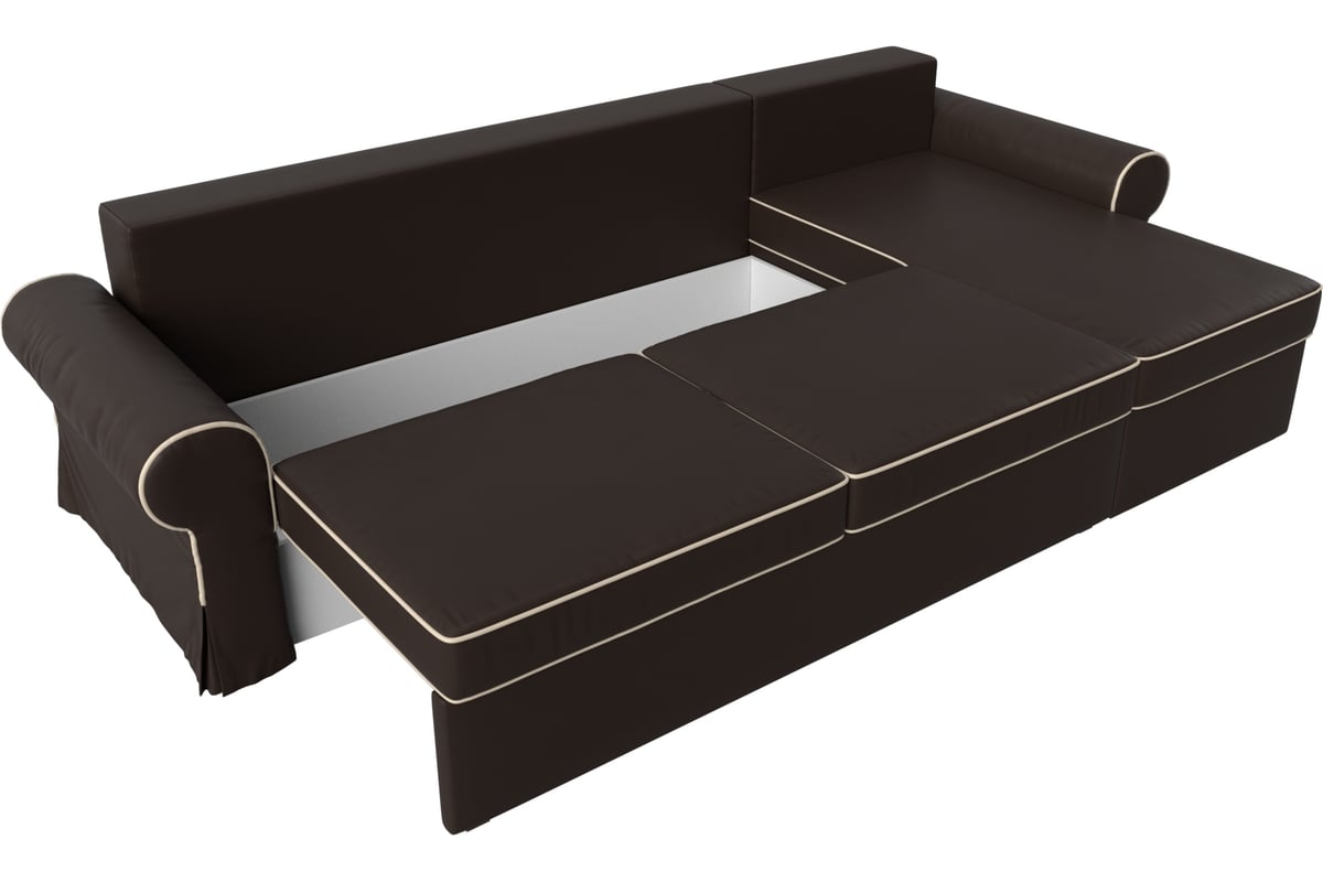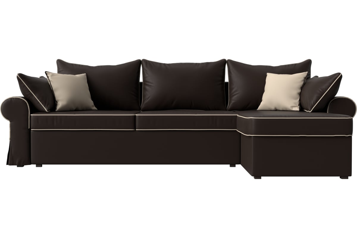 Угловой диван Лига диванов Элис правый полностью экокожа коричневая, кант экокожа бежевая, подушки экокожа КОР/кор/беж 110281