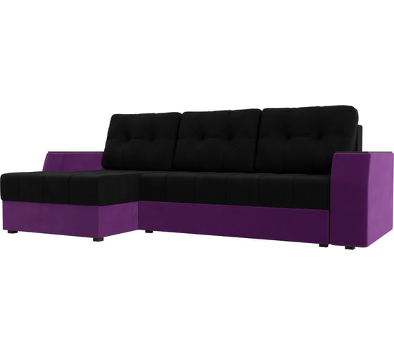 Угловой диван Лига диванов Эмир БС левый основа микровельвет черный, компаньон микровельвет фиолетовый 110436L