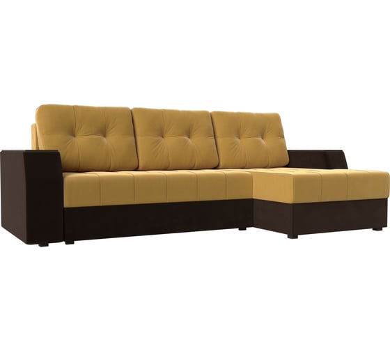 Угловой диван Лига диванов Эмир БС правый основа микровельвет желтый, компаньон микровельвет коричневый 110420