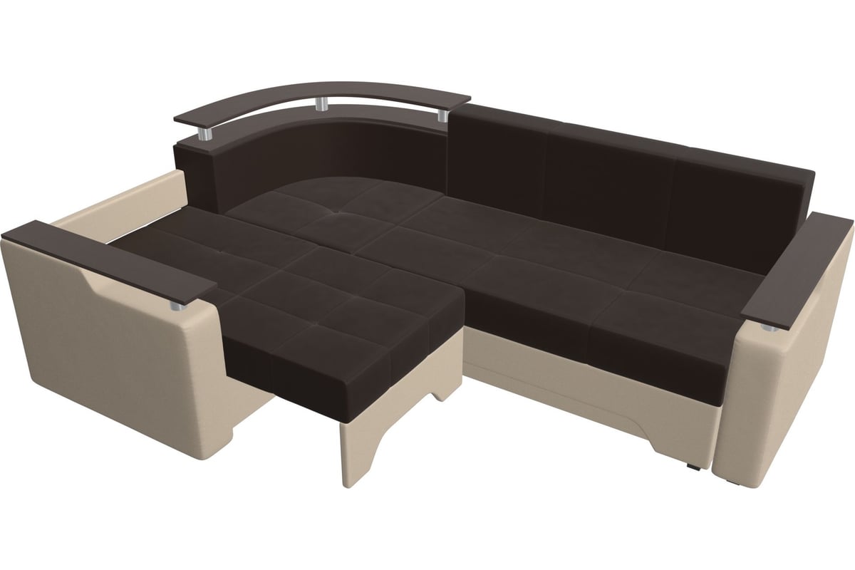 Угловой диван Лига диванов Комфорт левый основа экокожа коричневая, компаньон экокожа бежевая 102747L
