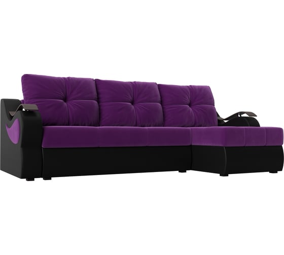Угловой диван Лига диванов Меркурий правый основа микровельвет фиолетовый, компаньон экокожа черная 100366