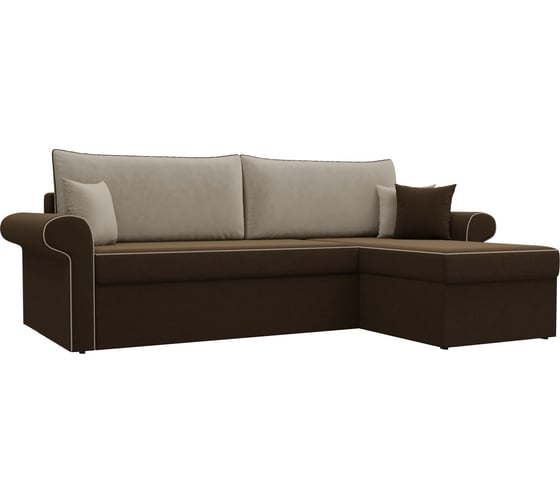 Угловой диван Лига диванов Милфорд угол правый полностью микровельвет коричневый, кант микровельвет бежевый, подушки микровельвет БЕЖ/беж/кор 29063