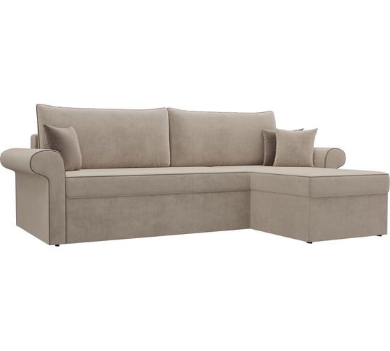 Угловой диван Лига диванов Милфорд угол правый полностью велюр бежевый, кант велюр коричневый, подушки велюр БЕЖ/кор/беж 117524