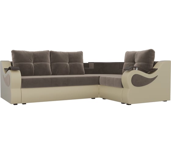 Угловой диван Лига диванов Митчелл основа велюр коричневый, компаньон экокожа бежевая 107546