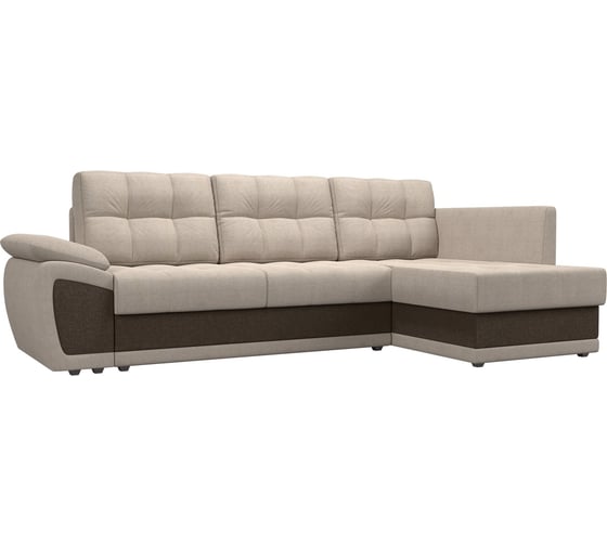 Угловой диван Лига диванов Нэстор прайм правый основа рогожка бежевая, вставка рогожка коричневая 103108