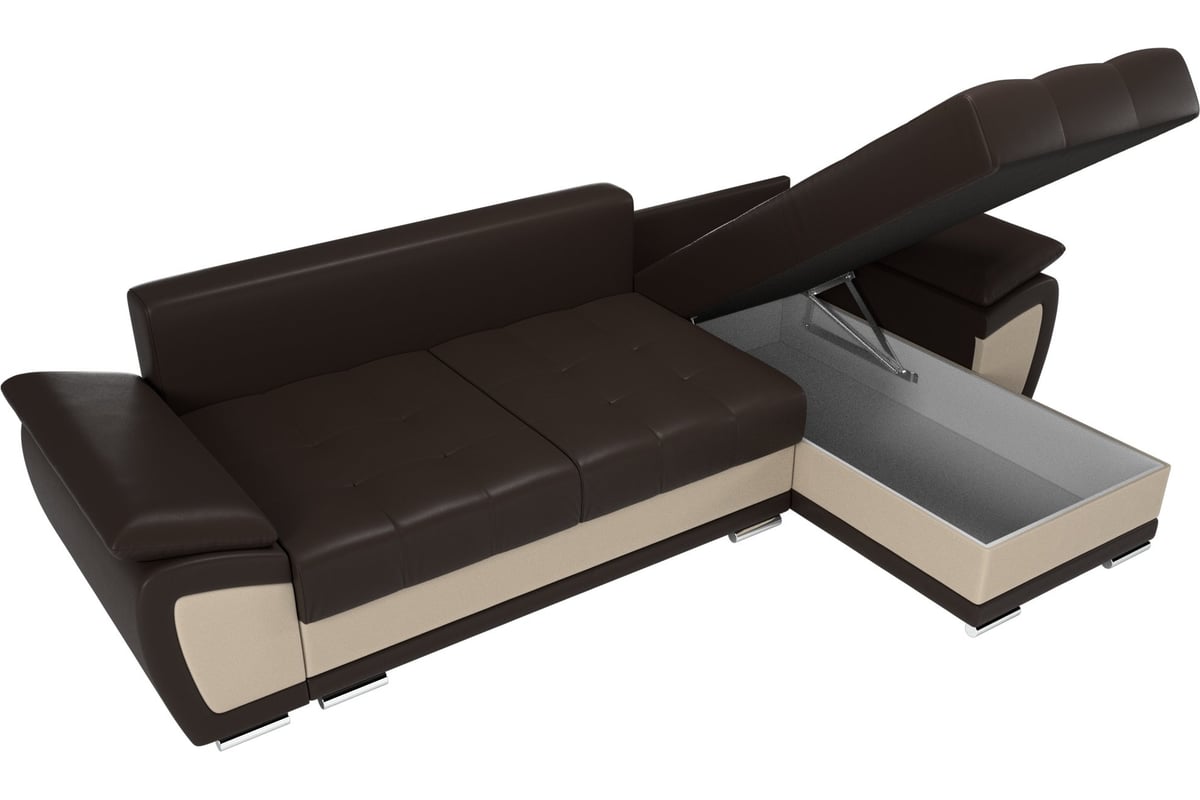 Угловой диван Лига диванов Нэстор правый основа экокожа коричневая, вставка экокожа бежевая 100430