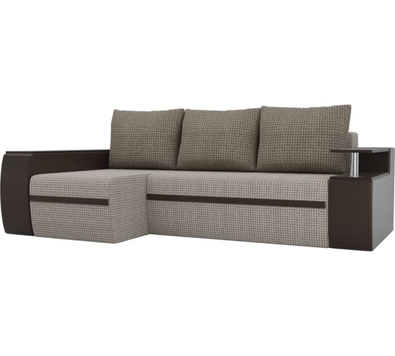 Угловой диван Лига диванов Ричмонд левый основа рогожка Корфу 02, компаньон экокожа коричневая, подушки рогожка Корфу 03 115025L
