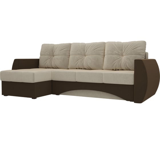 Угловой диван Лига диванов Сатурн левый основа микровельвет бежевый, компаньон микровельвет коричневый 101053L
