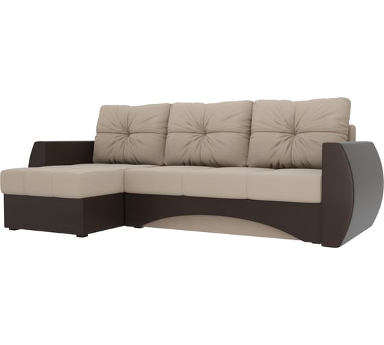 Угловой диван Лига диванов Сатурн левый основа рогожка бежевая, компаньон экокожа коричневая 101063L