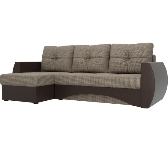 Угловой диван Лига диванов Сатурн левый основа рогожка Корфу 03, компаньон экокожа коричневая 101073L