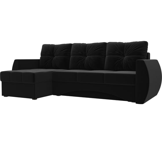 Угловой диван Лига диванов Сатурн левый полностью микровельвет черный 101057L