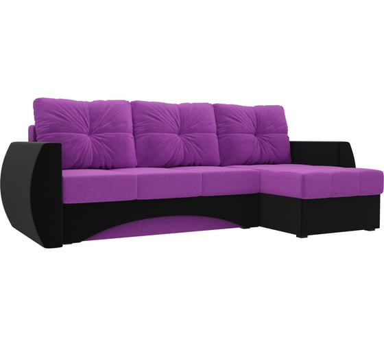 Угловой диван Лига диванов Сатурн правый основа микровельвет фиолетовый, компаньон микровельвет черный 101056