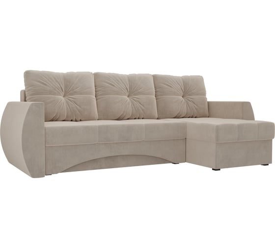 Угловой диван Лига диванов Сатурн правый полностью велюр бежевый 101045