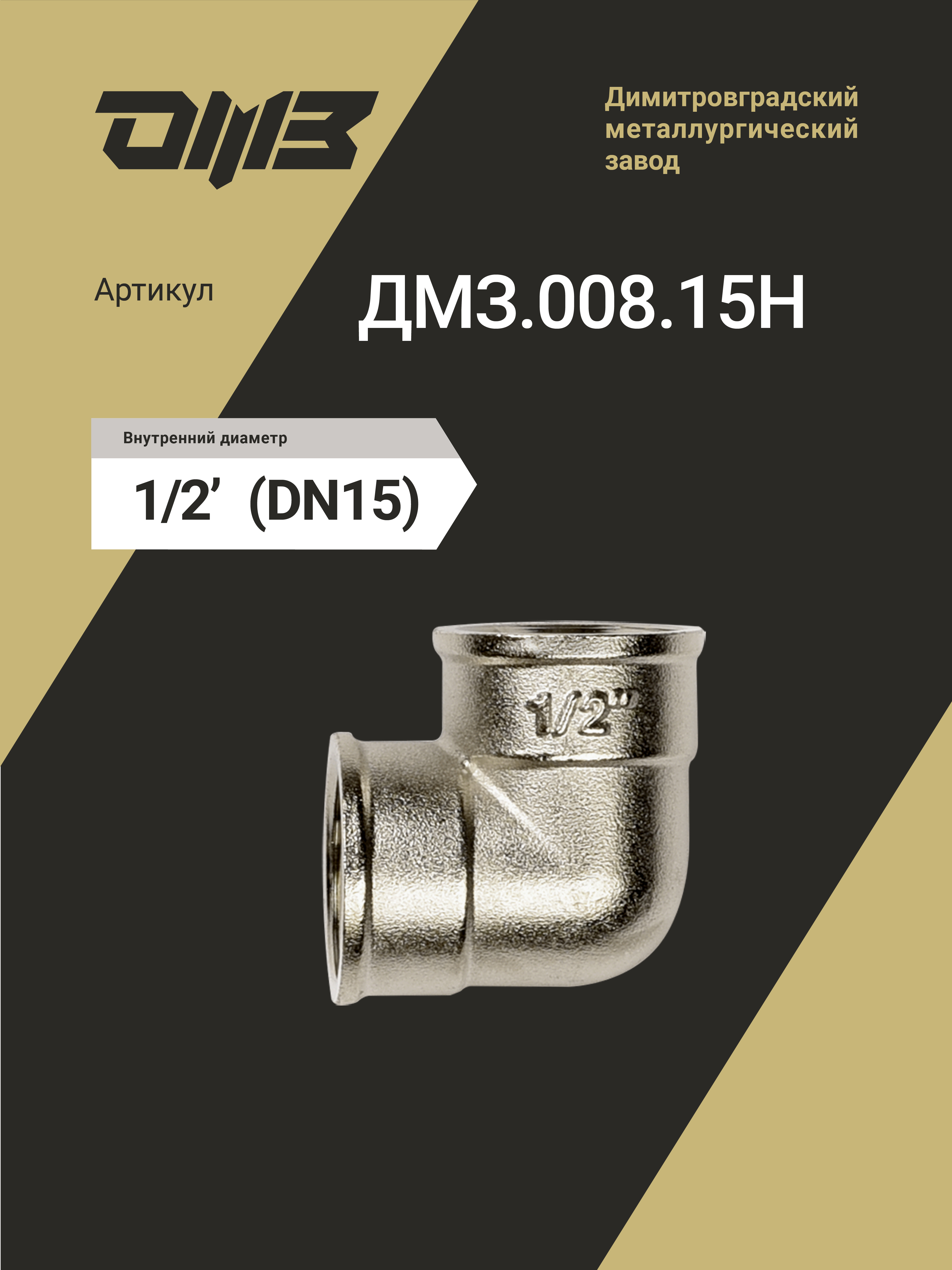 Угол ДМЗ 90 DN15 (1/2") ВР/ВР латунь никель, 5 шт ДМЗ.008.15Н5