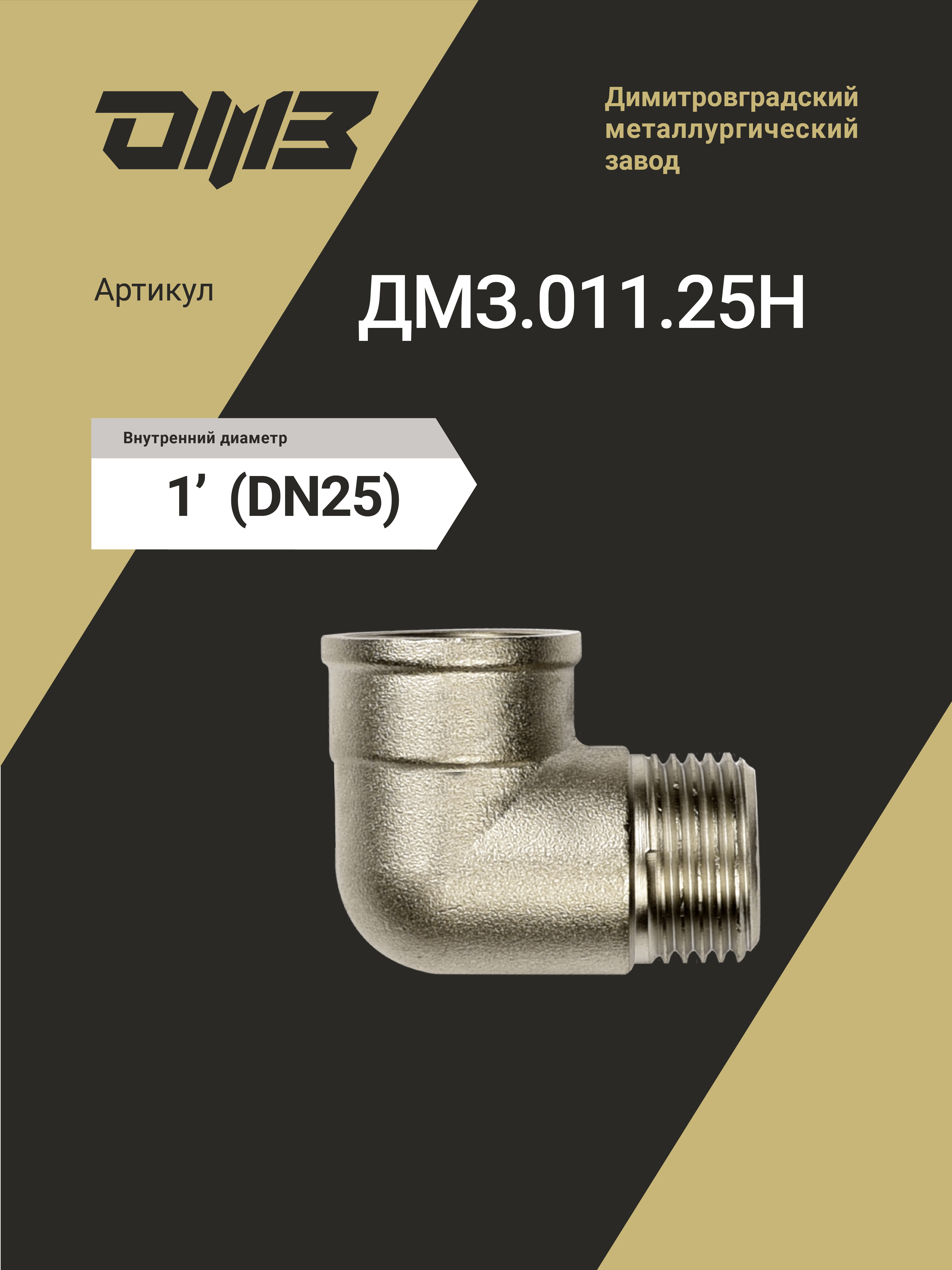 Угол ДМЗ 90 DN25 (1'') ВР/НР латунь никель, 2 шт ДМЗ.011.25Н2