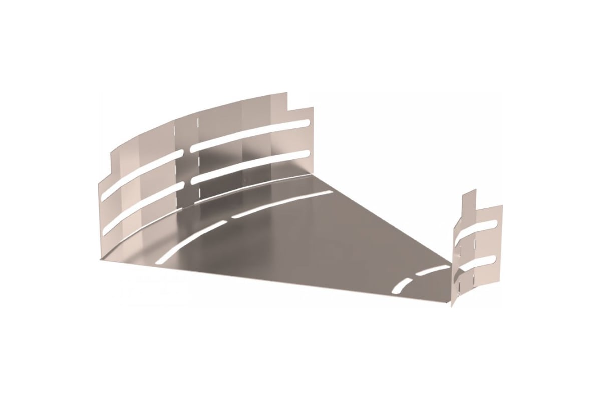 Аксессуары в исполнении AISI 409 – это изделия, изготовленные из ферритовой марки нержавеющей стали 08Х13, обладающих коррозионной стойкостью и высокими прочностями показателями, что позволяет применять изделия, в различных непищевых отраслях промышленности. Обеспечивает плавный переход горизонтальной кабеленесущей линии между лотками металлическими в диапазоне от 0 до 45 градусов.