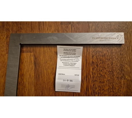 Хороший угольник. Угол 90 градусов. Есть паспорт проверки угла. Угол 90 проверял другим угольником.