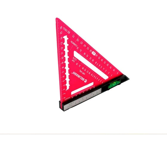 Угольник кровельный BELMASH RS75 - универсальный измерительный инструмент для строительных, кровельных и столярных работ. Предназначен для разметки при монтаже кровли, контроля перпендикулярности конструкций. Используется как торцовочный угольник, угломер и рейсмус.