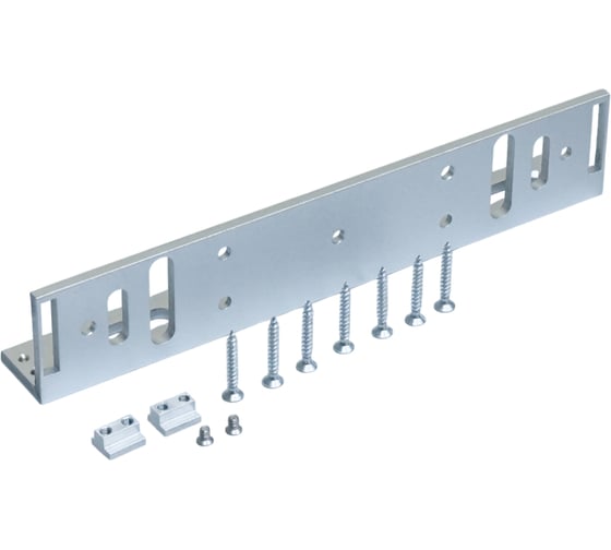 Уголок для крепления замков серий ML-295A**/ML-350A** с плавной регулировкой положения замка относительно уголка (за счёт наличия технологического паза) - для более точного совмещения замка с якорем. Цвет серебряный. Саморезы и Т-образные гайки в комплекте.