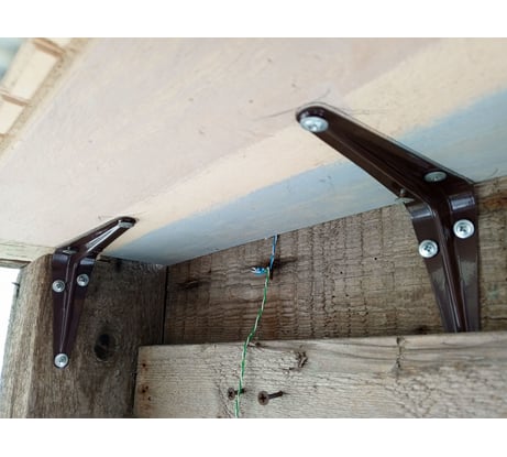 Брала для крепления полочки под навесом на улице. Со своей задачей справились на все 100%. На фото кажутся коричневыми, на самом деле темно-серебристые