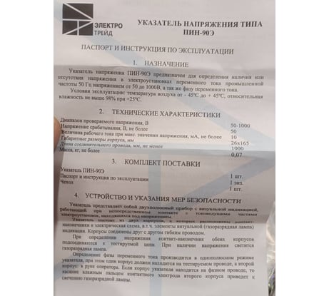 Указатель напряжения Электро Трейд до 1000В ПИН-90Э ET-UNN101