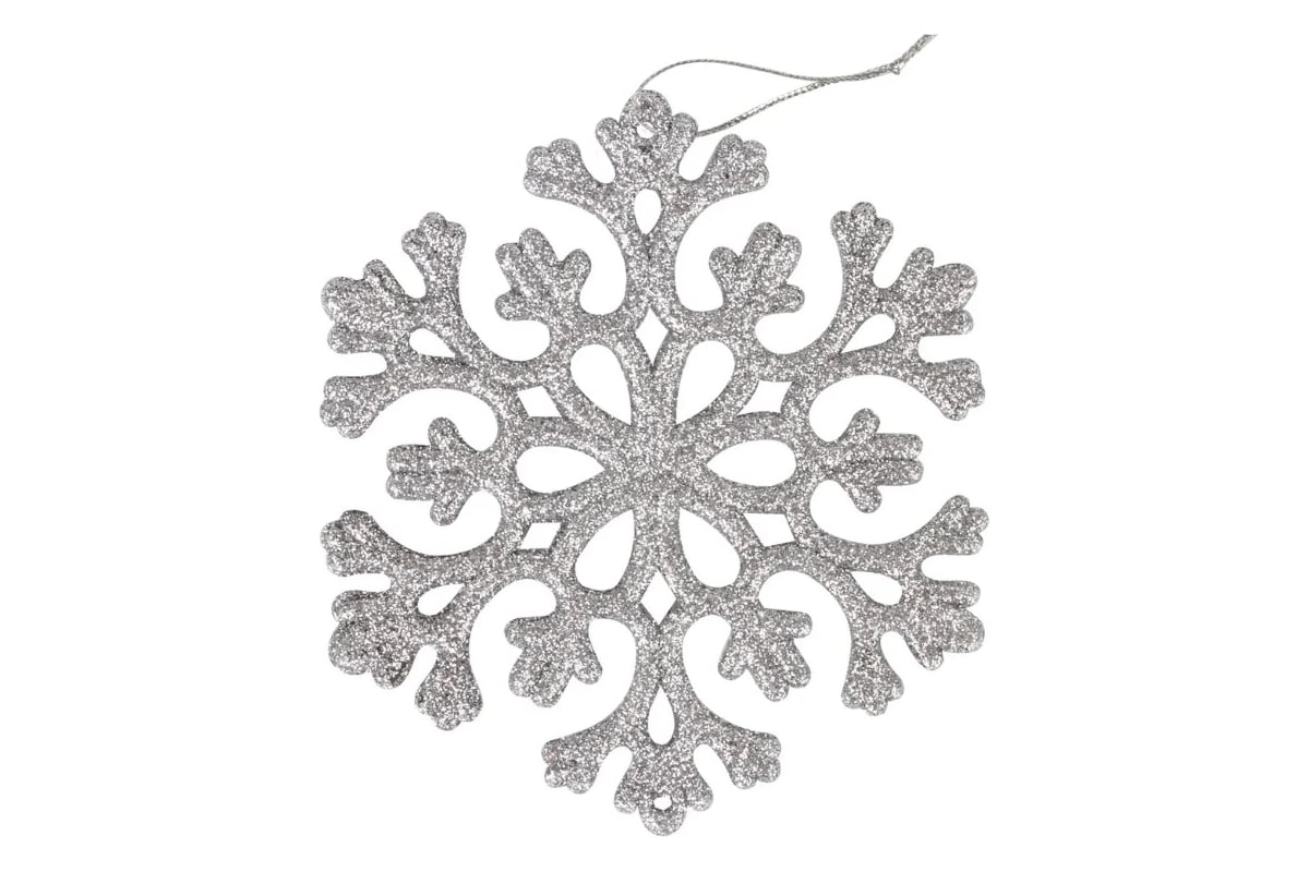 Набор елочных украшений станет ярким элементом декора для новогодней ели и интерьера дома. Серебристый цвет в сочетании с оригинальным дизайном украшений создадут праздничную и уютную атмосферу всеми любимого праздника. Новогодние украшения — вещи универсальные. Они не только способны создать неповторимый образ елочки, но и стать ярким акцентом стильной композиции. Основная задача состоит в том, чтобы шариков и прочих фигурных украшений было как можно больше, и тогда ощущение праздника не оставит ни на минуту.Елочные украшения выполнены в форме снежинок. Фактура: глиттер.