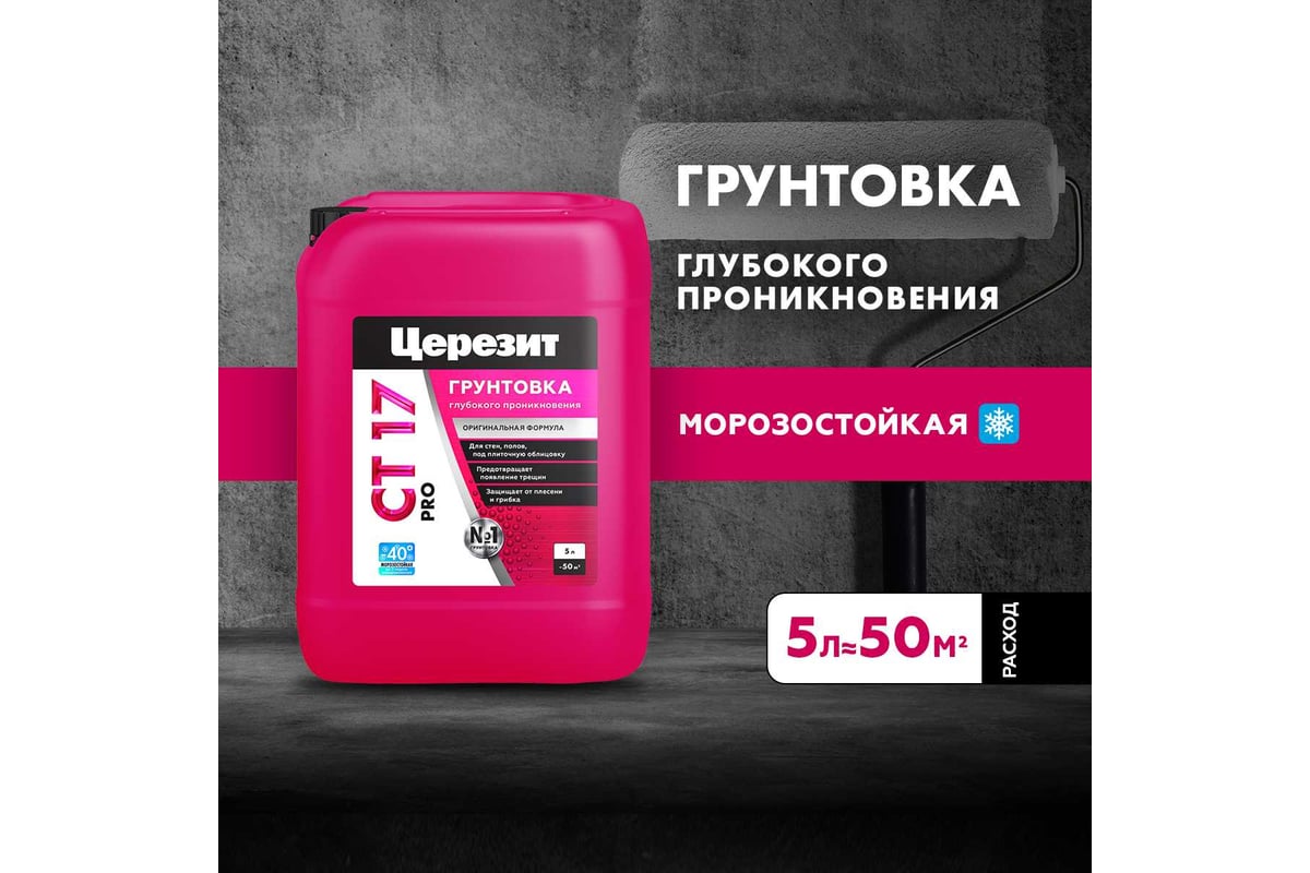 Грунтовка CT 17 PRO предназначена для обработки поверхностей перед нанесением штукатурных и напольных смесей, плиточных клеев и т.д.