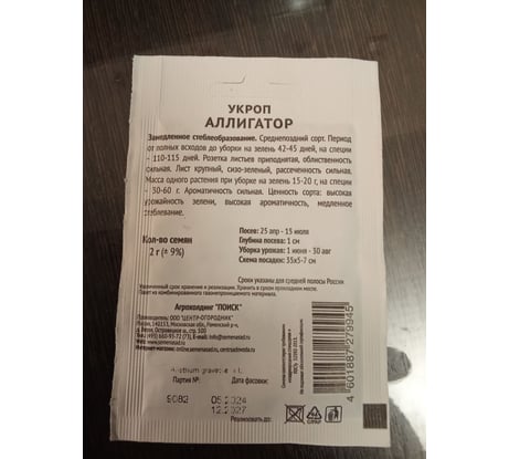 Укроп Агрохолдинг ПОИСК Аллигатор 2гр ЧБ 714147