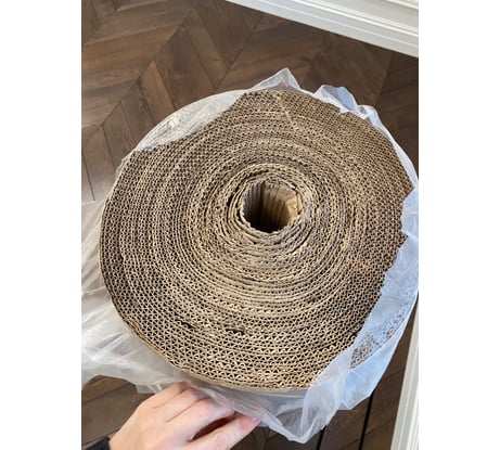 Картон отличного качества, без дефектов как в отзыве выше. Чистый, качественный, для закрытия Пола идеально. В самом начале маленькая зацепка, но это не считается — на первых 20 см. Все хорошо упаковано.
