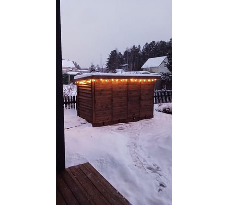 Простая, без излишеств, используется в качестве круглогодичной подсветки дровяника.