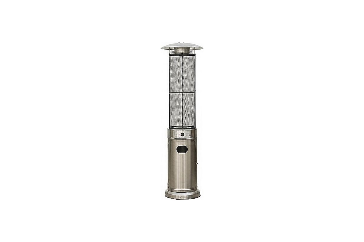 Обогреватель сделан из нержавеющей стали, благодаря чему выглядит красиво и ему не страшны царапины или небольшие механические повреждения. Подходит под любой газовый баллон до 27 л включительно (высота 59 см, диаметр 30 см).