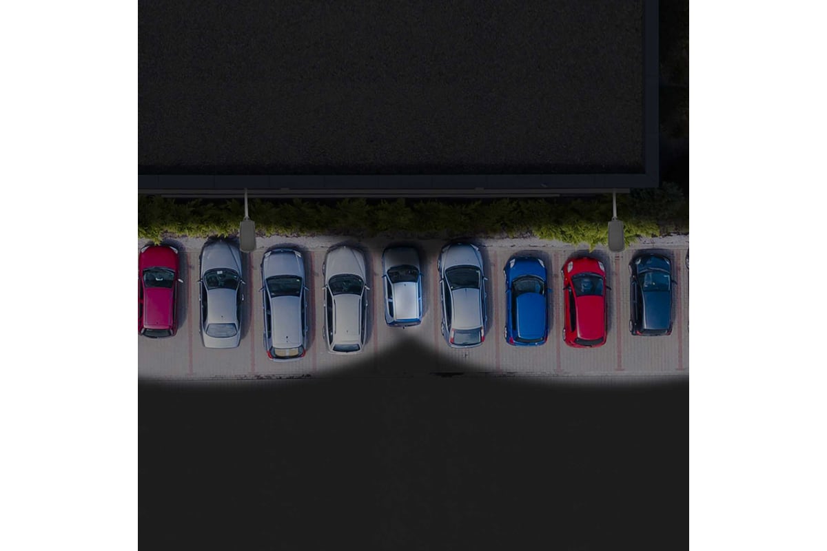 На кадрах камеры изображено боковое освещение в 8-15 метрах от фонаря, установленного на пятиметровом столбе. Сравнение с энергосберегающей лампой 105Ватт.