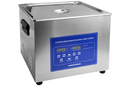 ODA-LD130 – ультразвуковая ванна объемом 15 литров с электронным управлением, дегазацией и выбором мощности ультразвука, 50 или 100%. Оснащена таймером до 30 минут и подогревом до 80°С. Ванна и корзина сделаны из нержавеющей стали SUS304. Имеет частоту ультразвука 40кГц. Подходит для очистки маслянистых, смолистых, жировых и карбоновых отложений. Также возможно использование для стерилизации различных предметов.