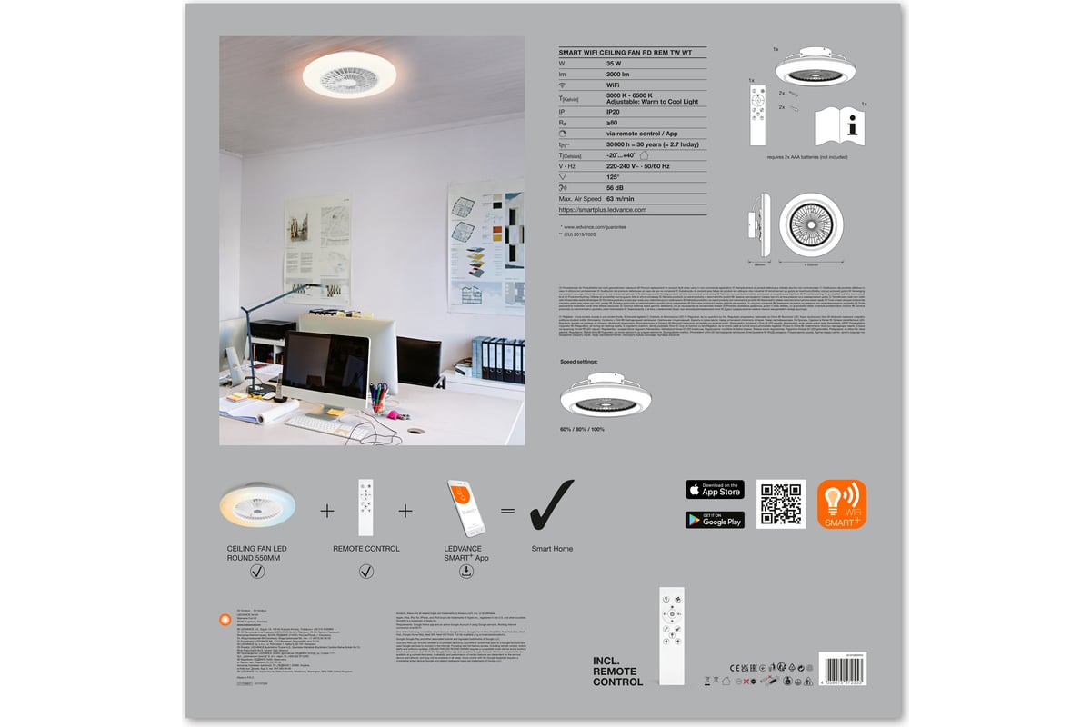 Расходные материалы для светильника LEDVANCE SMART WIFI CEILING FAN RD REM TW WTLEDV 4058075572553