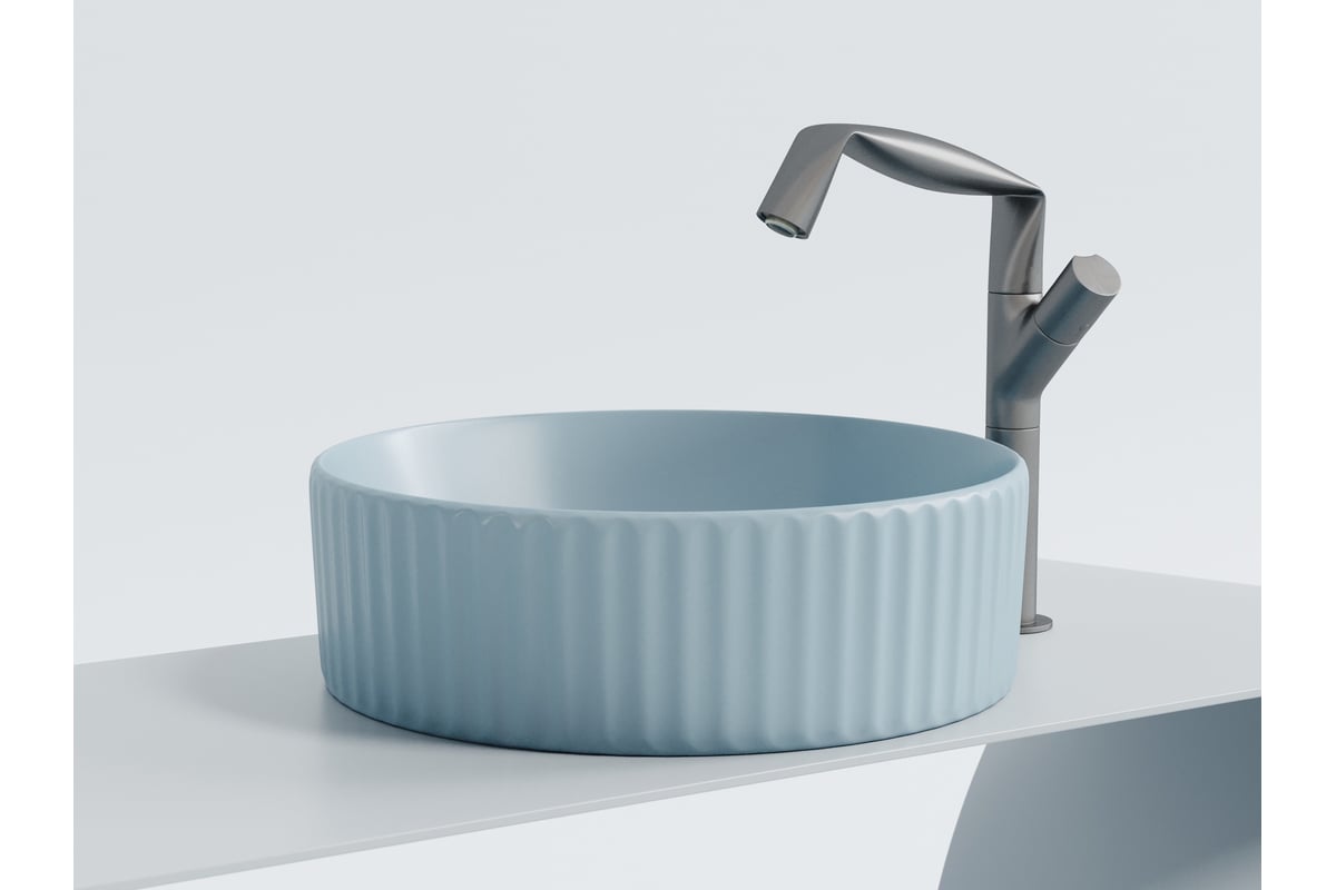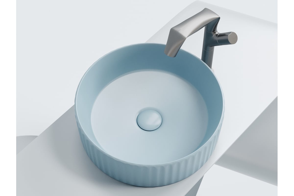 Умывальник чаша накладная Ceramicanova Element круглая, голубой матовый, 360х360х115 мм CN6057ML