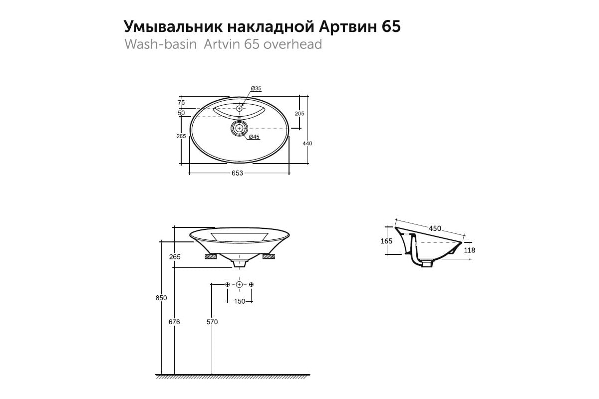 Умывальник накладной Керамин Артвин 65 с креплением для накладного умывальника CDB00029606