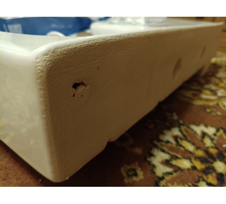 Размер 605 от стены, 625 в ширину, хотя выбирал при заказе ширину 600, а не 630. Кому важно, приходите за заказом с рулеткой. Плоскость прилегания к стене не покрыта глазурью, как и смежные с ней уголки. Придётся промазывать герметиком. Сливное отверстие неправильной формы, отчего решётка слива не будет прилегать к фарфору по всей окружности, а в щелях будут застревать волосы и зарождаться новая жизнь. Отверстие под смеситель тоже не по центру предназначенного для него выступа. К сожалению не обратил внимания на эти дефекты в магазине, а обнаружил только при сборке. В комплект сифона не доложили резинку соединения слива с приёмной трубой сифона, а может она и вовсе не предусмотрена конструкцией. Если сифон засорится и вода будет стоять в раковине, это соединение потечёт. Кронтейны крепления к стене слабоваты. Особенно удивляют малюсенькие пластмассовые закладные крепления раковины к этим кронштейнам на винтиках М4. Фактически консольное крепление двадцатикилограммовой раковины вот на это? Вы издеваетесь?