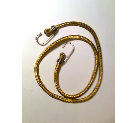 Хороший шнур, крюки держатся уверенно, наконечники в резинках, растягивается достойно.
