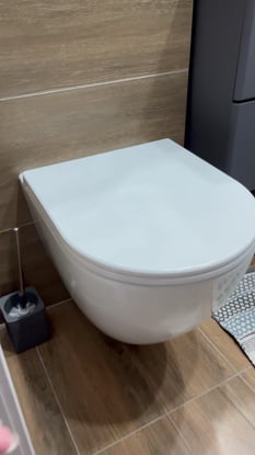 Очень мне нравится мой унитаз. Гладкий, как яичко, крышка снимается одним нажатием. Мыть легко. Все-таки подвесной унитаз-это находка для маленьких санузлов. А встроенная инсталляция занимает меньше места, чем бачок и трубы за ним.